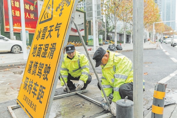 为了应对低温雨雪天气带来的交通安全风险挑战,12月14日下午武汉交警迅速启动恶劣天气应急预案,连夜出动警力1570余人次,增设恶劣天气警示标志980余块,重点巡查高架环线、过江桥隧等路段,观察路面结冰情况,消除道路交通隐患48起,同时对酒驾、超员超载等交通违法行为开展整治。12月15日,武汉交管部门发布低温恶劣天气交通预警,请广大驾驶员注意路面尤其是桥梁、高架道路结冰情况,提前检查车况,谨慎驾驶,安全出行。