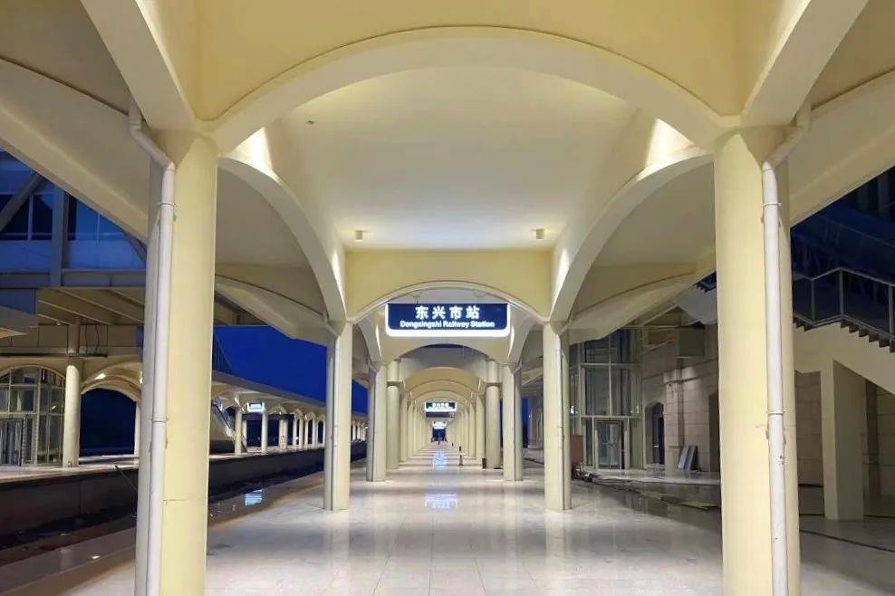 防东铁路上新建车站东兴市站以“祖国门户,滨海雄关”为设计理念,外立面弧形门洞仿佛连绵的山丘,又如跃动的海浪,充分展现东兴市“边、海、山”的鲜明特色及历史底蕴。
