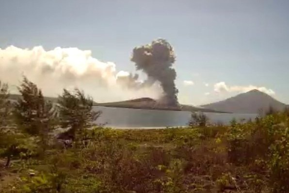 印尼喀拉喀托火山喷发 火山灰柱达1000米