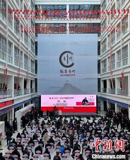 中新网山东青州12月16日电 (郑秀宝 赵晓)“翰墨青州·2023书画艺术节”12月16日在青州中晨书画艺术产业园开幕。本次展会展出1万多幅书画艺术精品,既有中国文促会国画院研究员、全国各省市区美协主席团成员等130余位当代中国书画名家的力作,也有齐白石、张大千、徐悲鸿等20余位大师的名作。