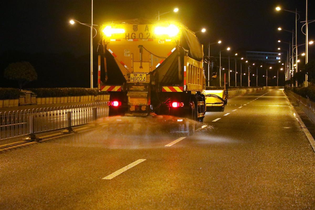 15日晚9时至11时,气温已低于零摄氏度,武汉全市暂停道路清洗作业,“当气温高于2℃且阳光充足的情况下,才会恢复道路清洗作业,确保道路见本色,无积水,不结冰。”
