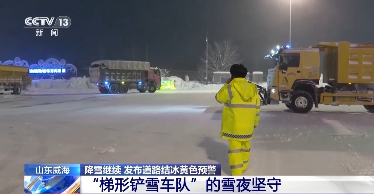 从昨天(16日)开始,山东威海出现强降雪天气。受降雪和低温影响,部分地区道路结冰和积雪比较严重,今天降雪仍在继续。当地气象台今天(17日)继续发布道路结冰黄色预警。连续降雪给当地交通出行带来了不便。为了能够尽快改善路面积雪情况,负责高速公路养护的张辉和他的工友们,不分昼夜地进行道路积雪的清除工作。