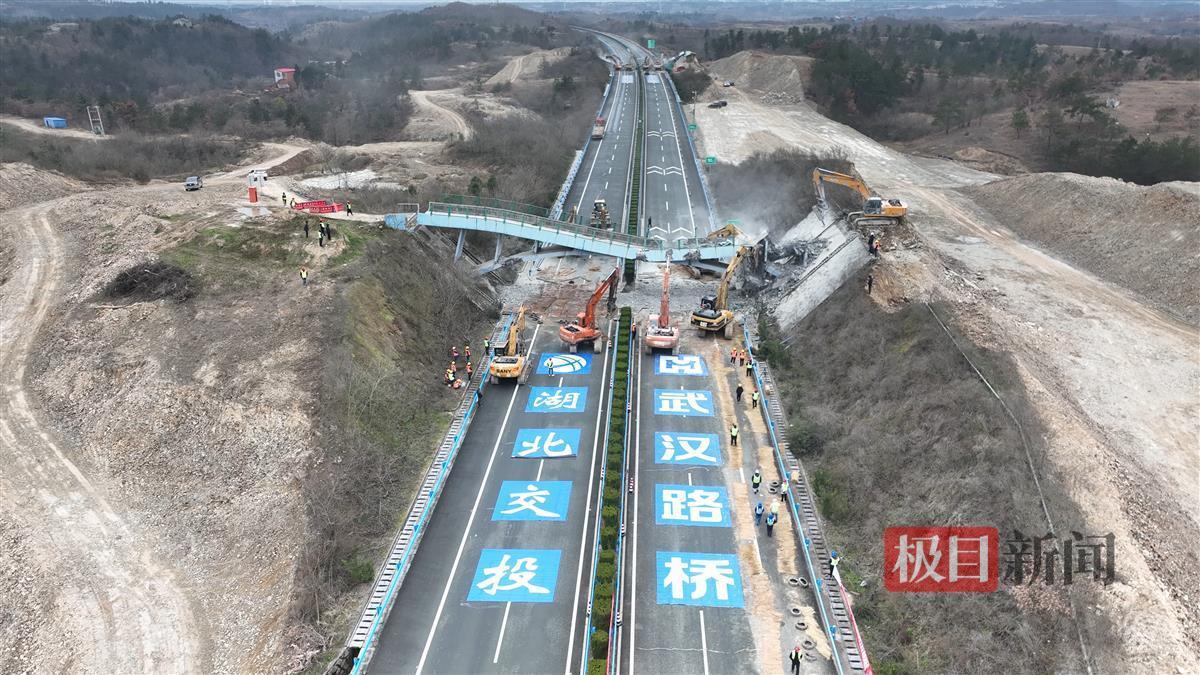 据武汉路桥随信高速第一标段工作人员介绍,当天早上7时,麻安高速公路广水收费站至随州东收费站全线封闭。150余名现场管理、施工人员,60余台机械设备,以最快速度完成人员设备集结,与时间赛跑。8时30分许,开始对天桥实施破拆。