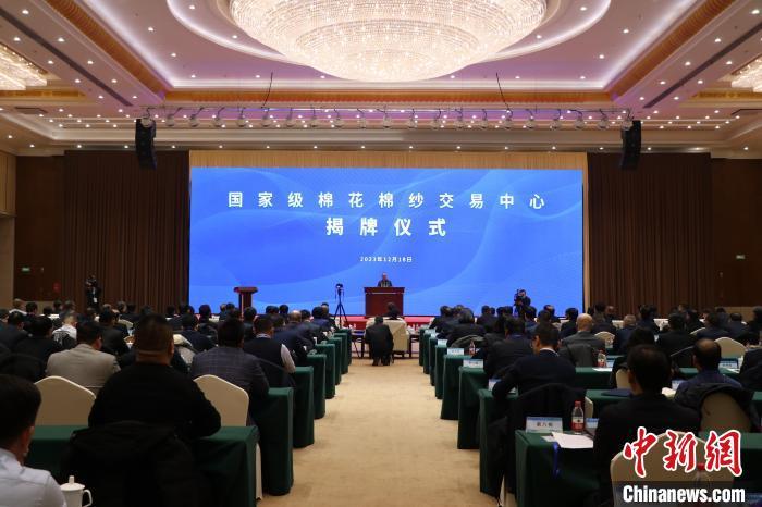 18日,国家级棉花棉纱交易中心揭牌仪式在新疆乌鲁木齐市举行。喇小飞 摄