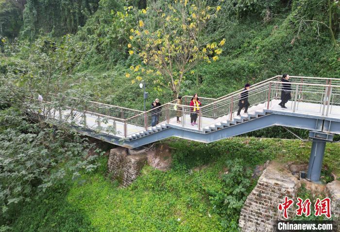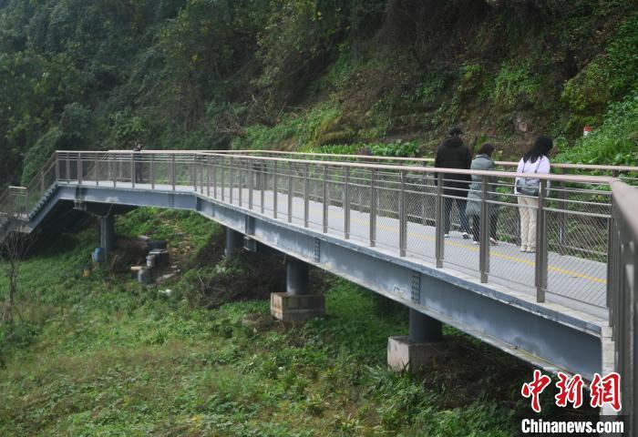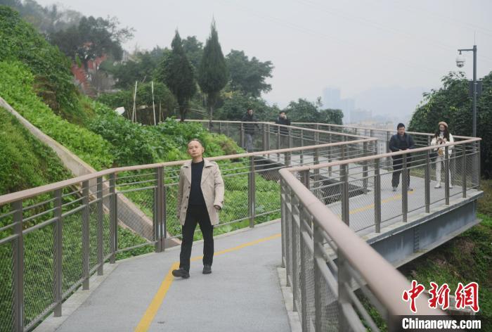 图为市民行走在“悬空”步道上感受慢行交通系统。中新网记者 周毅 摄