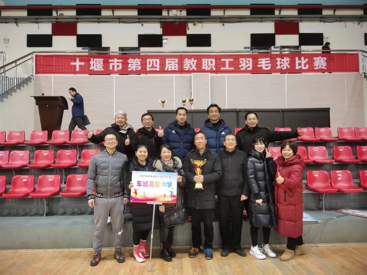12月16日-17日,十堰市举行了第四届教职工羽毛球比赛,十堰市车城高级中学代表队勇夺冠军桂冠。