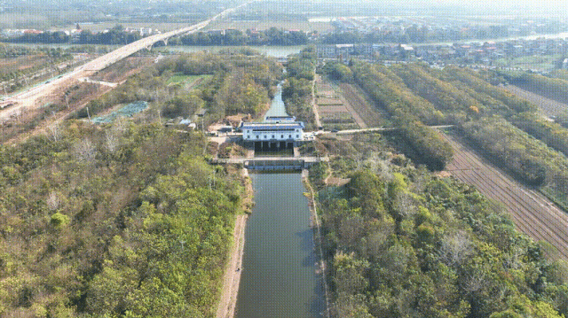 除了湖区的生态修复,青天湖与长港的联通线——共青港也进行了岸线修整。湖港连通,青天湖的水“活”了起来。2.1公里的港道上,集排涝和灌溉于一体的杜沟泵站格外瞩目。提档升级后,泵站排涝量可达到16.37立方米每秒,是名副其实的“守护神”。