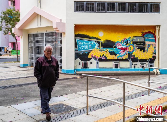 图为沙头角当地居民经过一幅彩绘壁画。 中新网记者 侯宇 摄
