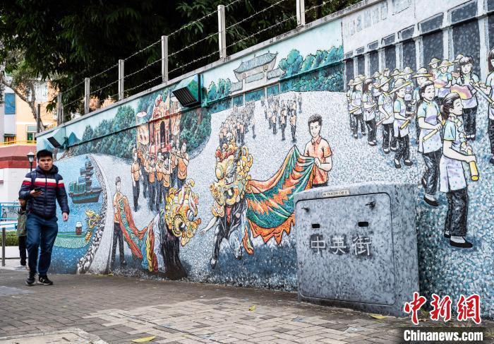 图为沙头角顺平街展示当地传统文化活动“酬神庆典”的壁画。 中新网记者 侯宇 摄