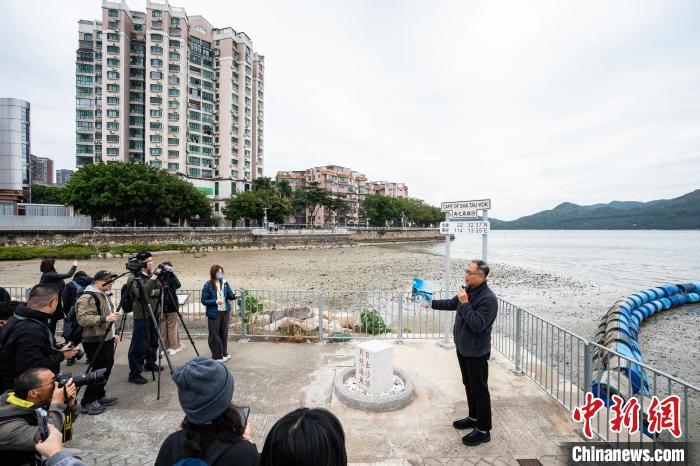 图为工作人员在“沙头角之角”向媒体记者介绍相关信息,对岸为内地深圳市范围。 中新网记者 侯宇 摄