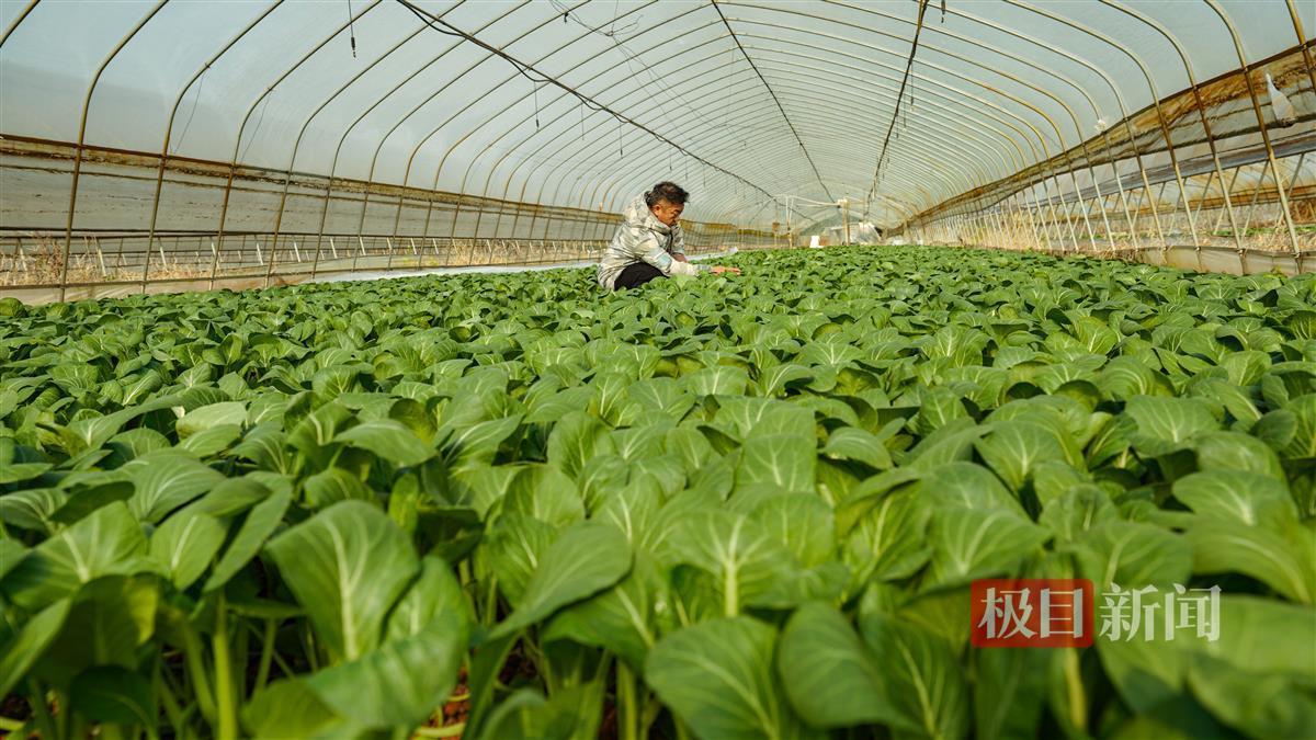 12月20日,武汉天气晴朗,久违的阳光洒在东西湖区东山农场的大地上。上午10时许,极目新闻记者抵达鑫三江都市田园综合体的连片蔬菜基地时,农户李师傅正在大棚里打理即将采摘的各种快生菜,忙得不可开交。