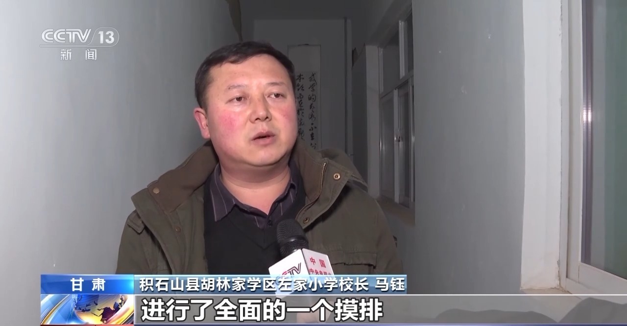 积石山县胡林家学区左家小学校长 马钰:我们首先对校舍进行了全面的摸排,根据摸排情况进行统计,然后上报教育部门,根据上级部门的评估情况,来预判到底是继续在这办公或者住宿,如果不允许我们将会暂且对一些校舍警戒起来。
