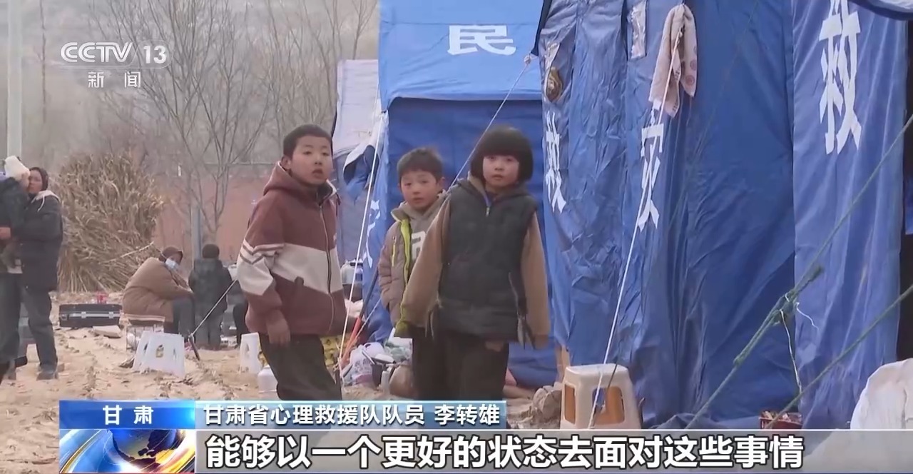 甘肃省心理救援队队员 李转雄:这些小孩子们可能也是第一次经历这样的事情,尤其是像那些目睹(灾情)的,他可能时时刻刻处在紧张、担心、害怕的情绪当中,所以我们会通过一些游戏治疗,一些比较放松的方式和技巧,帮助他们能够尽快从这种紧张害怕的情绪里面抽离出来,鼓励他们建立积极的自信心。