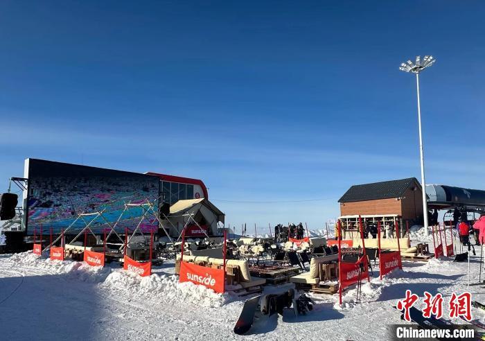 “落日派对”由山顶今年刚开业的sunside餐厅举办。餐厅老板张龙和合作伙伴、发小刘雨都是新疆人。20多年前,张龙到重庆大学学习电影专业,此后从事文化传媒工作、走南闯北,心里却惦记着回家乡“做点事情”。恰巧两三年前在新疆生活的刘雨和他聊起家乡冰雪运动发展势头,两人便筹划在将军山国际滑雪度假区(以下简称“将军山滑雪场”)开间店铺。