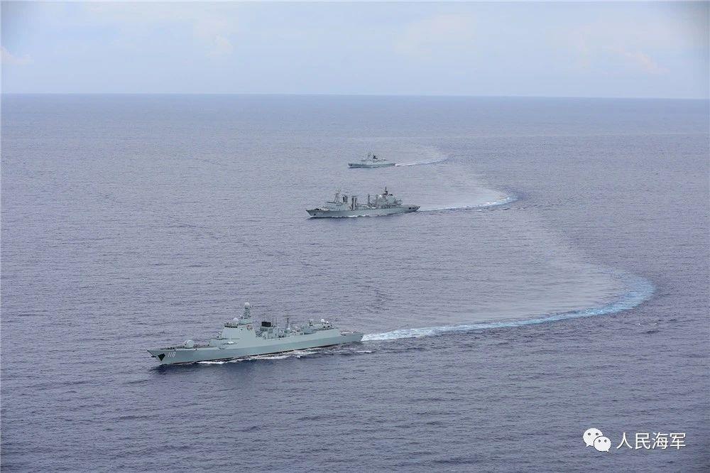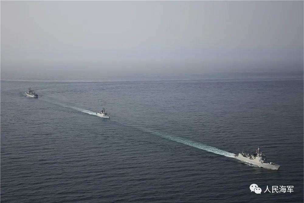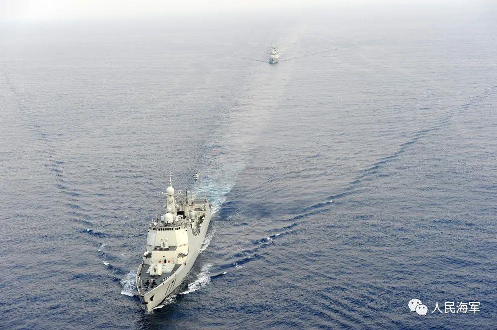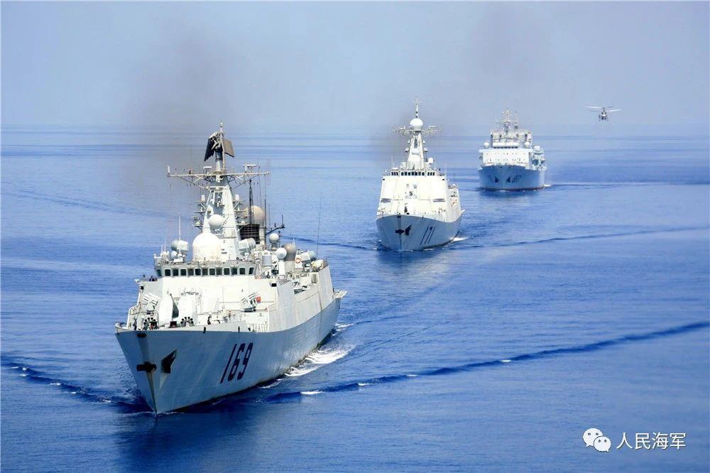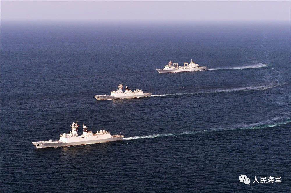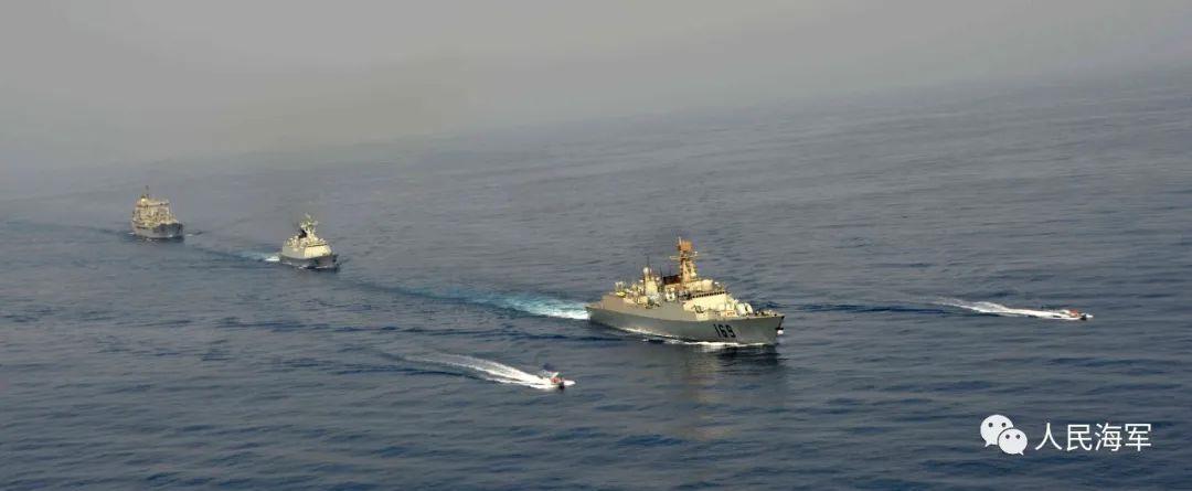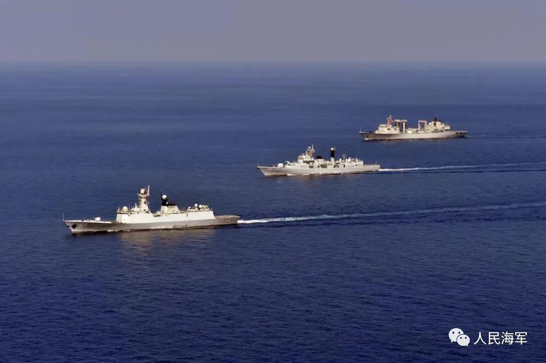 舰艇编队:海口舰(171),岳阳舰(575),青海湖舰(885)
