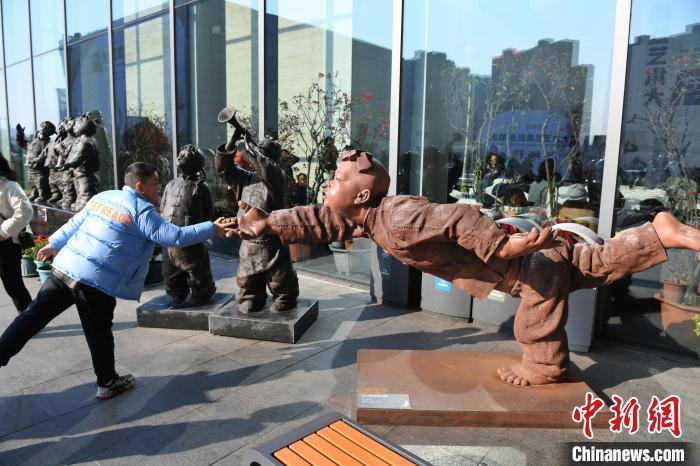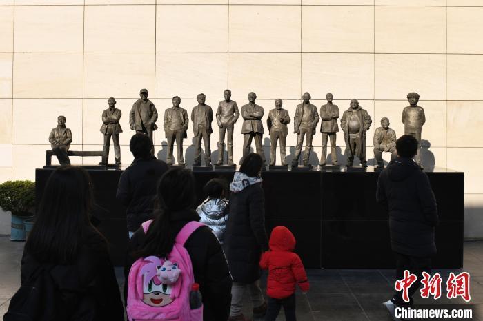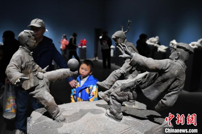 市民参观雕塑作品《细伢子“戏”》。 中新网记者 杨华峰 摄
