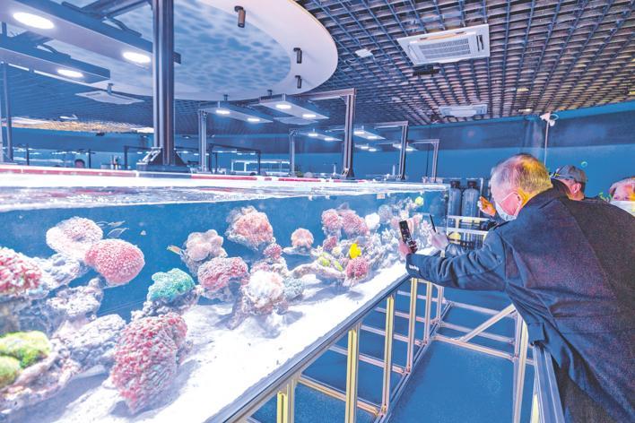 12月22日,在武汉极地海洋公园内,市民游客正在新开放的珊瑚繁育馆内参观。据介绍,该珊瑚繁育馆是华中首个以珊瑚礁为主题的科普基地,致力于珊瑚保育和大众科普的公益场馆。馆内展示着宝石花珊瑚、尼罗河珊瑚、富士脑珊瑚等40多种、3000株各式各类的珊瑚。(湖北日报全媒记者 倪娜 通讯员 袁杰 摄)