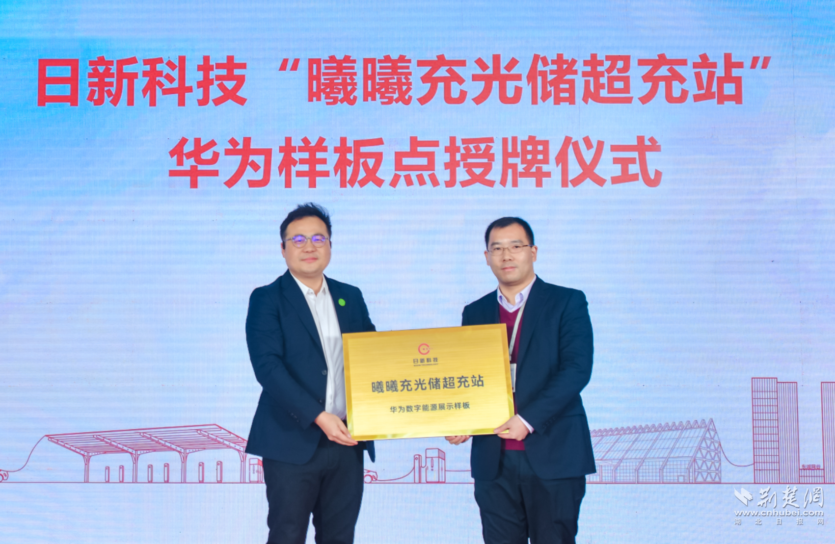 日新科技“曦曦充光储超充站”华为样板点授牌仪式。通讯员供图。