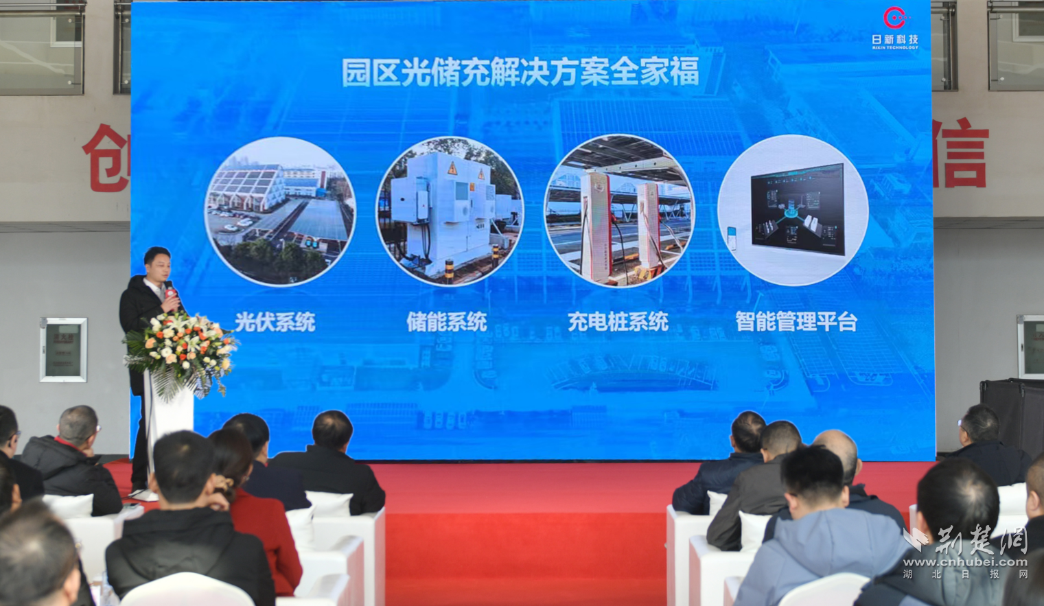 在日新科技曦曦充光储超充站现场会上,华为数字能源技术有限公司副总裁首席战略官张峰、杭州品联科技有限公司执行董事总经理陈文勇、湖北省新能源发展促进会会长甄建桥、湖北省建筑节能协会秘书长彭德柱、中国城市建设研究院总经理丁高等领导、专家及众多生态伙伴,共同见证了日新科技曦曦充光储超充站正式投运。同期,日新科技技术总监高真发布了“园区光储充解决方案”。