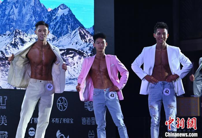 男子健身模特全场总决赛比赛现场。记者安源 摄