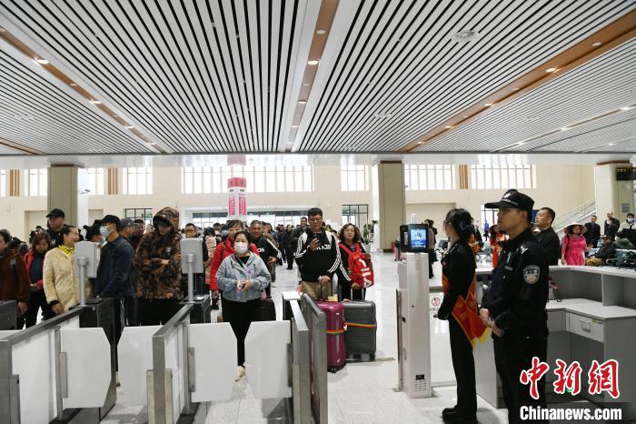 图为香港游客韦家胜在人工检票通道排队检票。 蒋雪林 摄