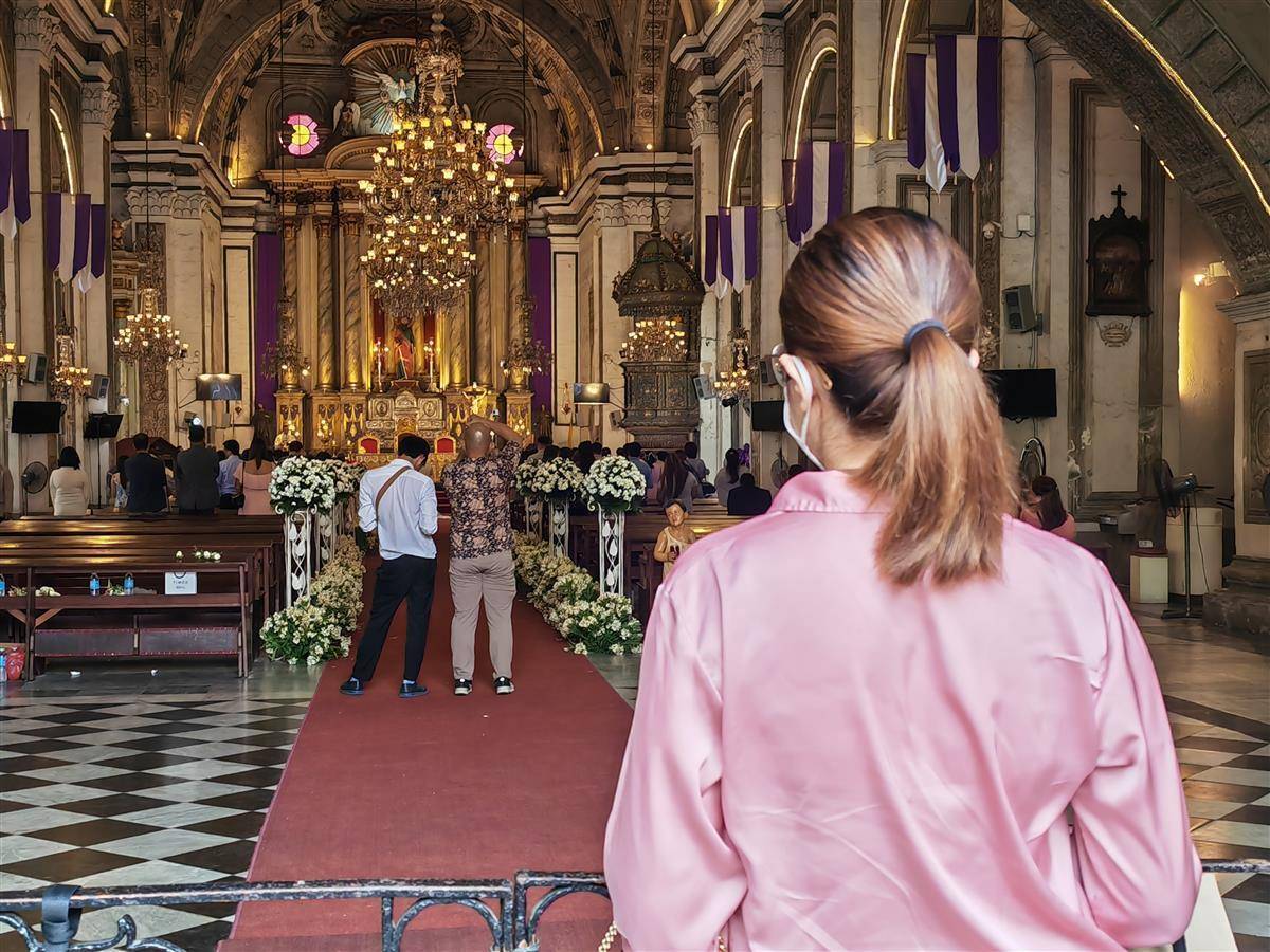 圣奥古斯丁教堂,一对新人的婚礼吸引了许多游客的关注。