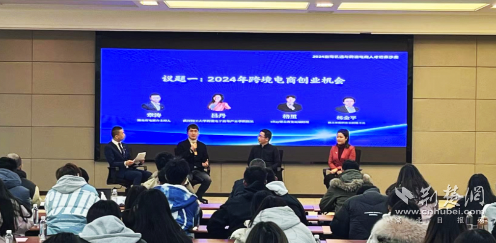 伍家岗区商务局党组成员、伍家岗区电商产业发展服务中心主任王召宾,阿里云计算有限公司数字政府资深专家古俊分别发表致辞。eBay湖北区商务拓展经理格里、湖北省数字技术研究与试验发展协会副秘书长杨金平、武汉轻工大学跨境电子商务产业学院院长吕丹博士先后围绕“2024出海品类中的蓝海与红海”、“2023年前三季度湖北省出口数据分析”和“跨境电子商务产业学院区域合作”进行主旨分享,并围绕“2024年跨境电商创业机会”、“chatGPT浪潮下跨境电商运营升级”、“如何联动武汉高校,培育宜昌电商人才”和“农产品与食品出海的机遇和挑战”四项议题开展圆桌讨论。