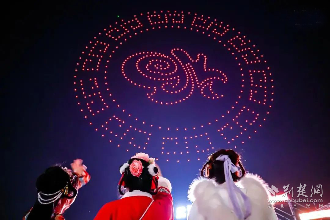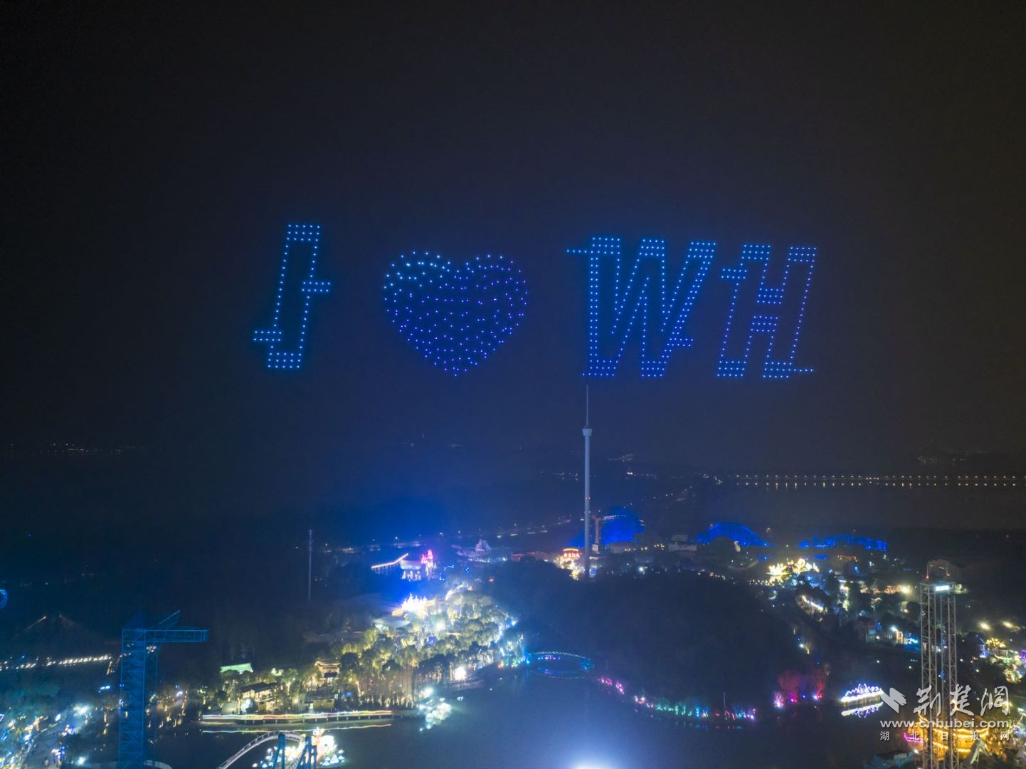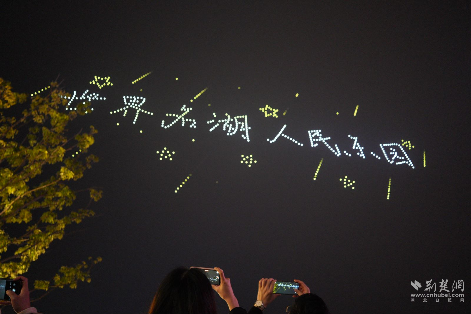 无人机许愿光影秀,点亮东湖夜空。通讯员供图。
