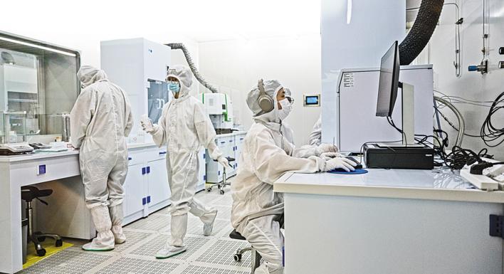 6月1日,湖北三峡实验室现代化的无尘实验室内,科研人员正在进行新能源关键材料的实验。