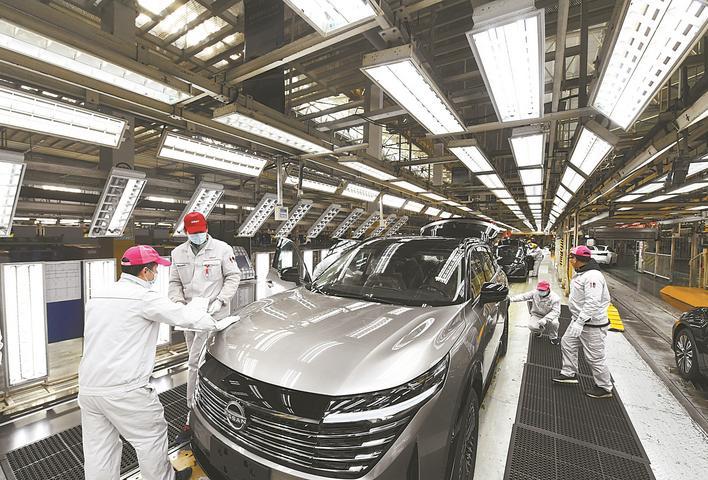 12月16日,东风日产襄阳工厂检测线上,全新大家庭旗舰SUV“探陆”进行量产。