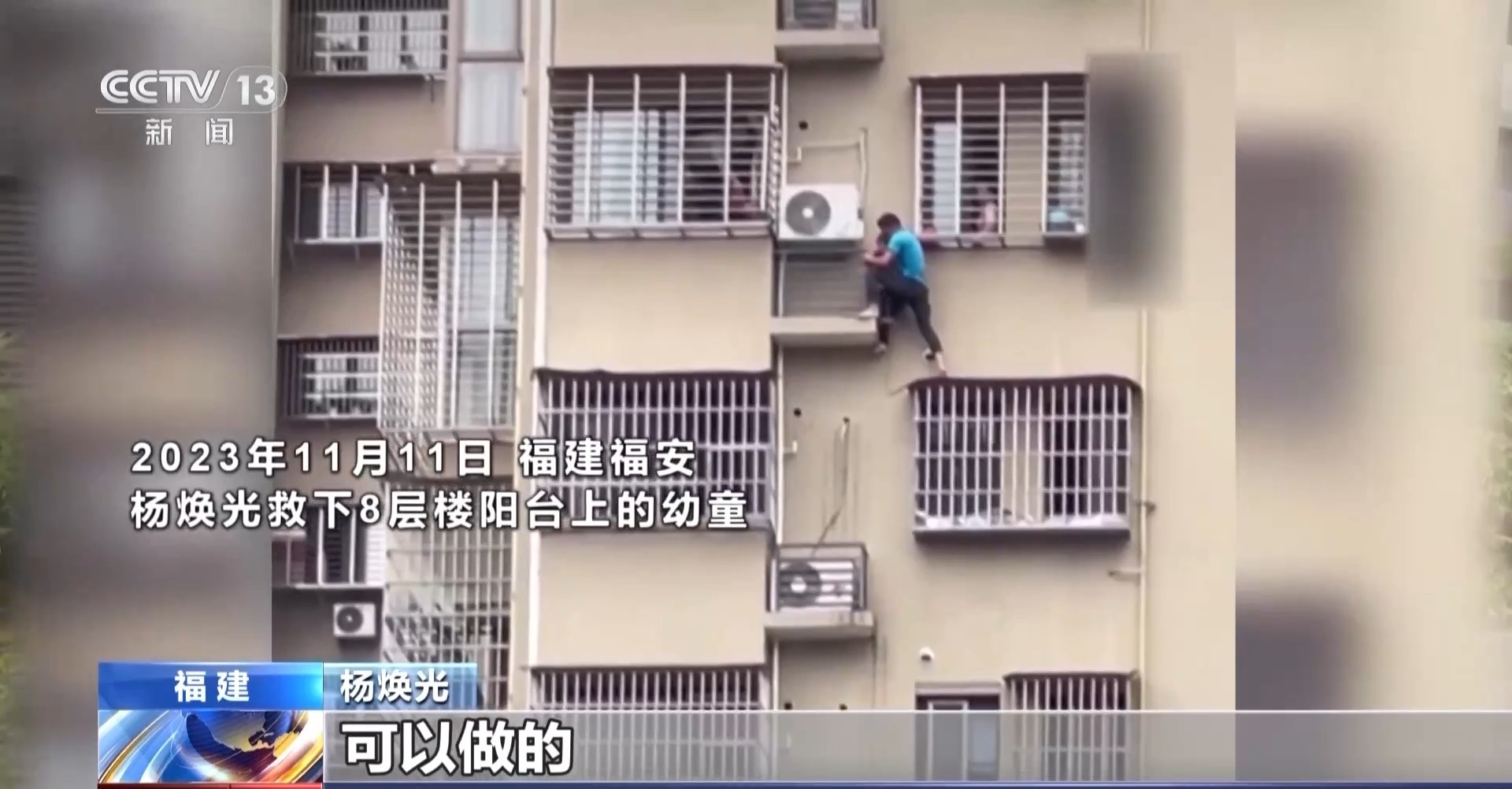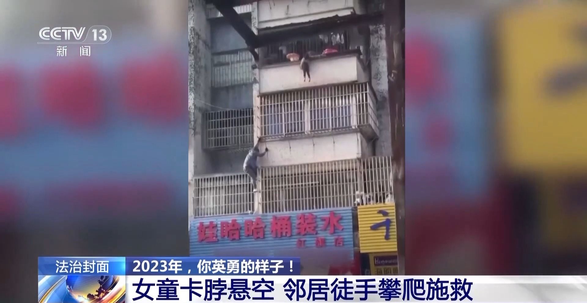 2023年12月5日,珠海市红旗镇某小区内,一名小女孩儿悬挂在4层楼的防盗网上。这时,路过此地的赵天马看到了这一场景,快速地从地面上顺着防盗窗向上爬。