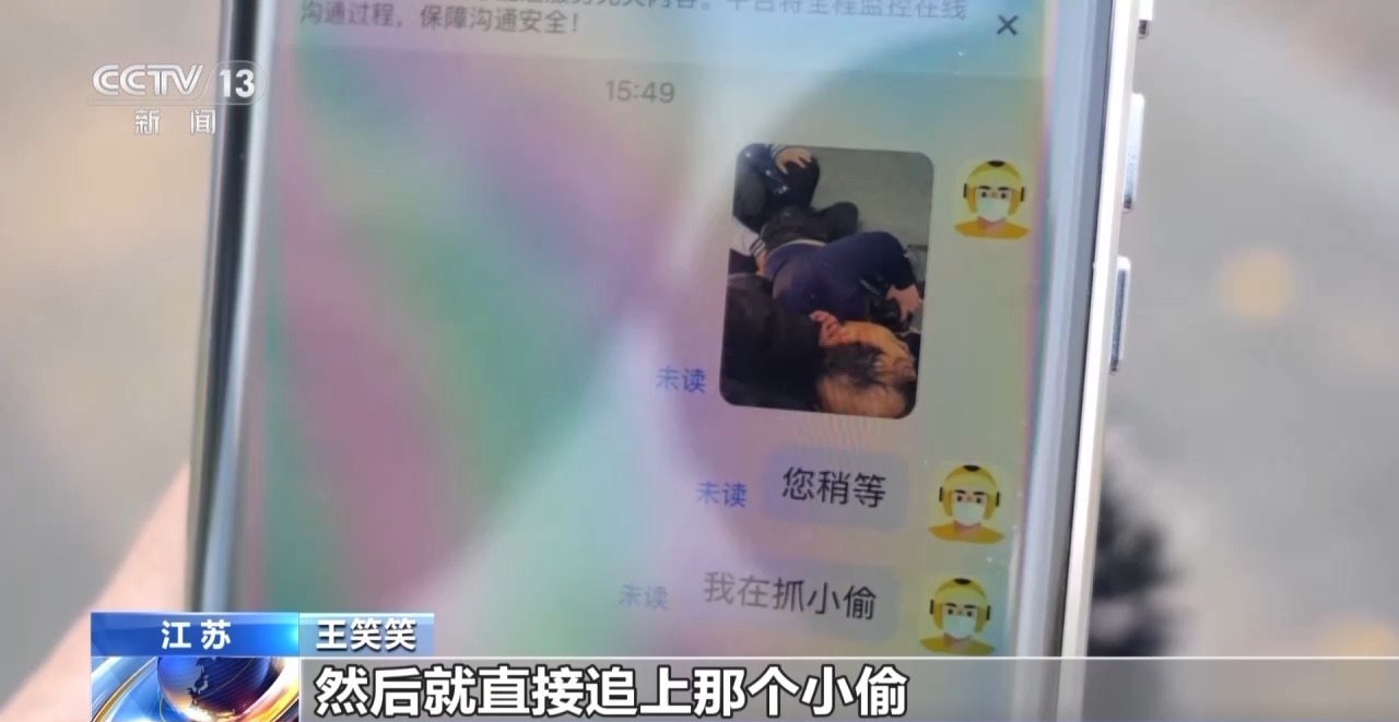 外卖小哥 王笑笑:一男一女,女的追着男的说抓小偷,我当时快超时了,然后就比较着急,然后当时在想是什么情况,然后扭头看了一眼,看了一眼好像,就是真正的小偷,然后当时也没想那么多,停了个差不多十几秒钟,然后人看的人越来越多,然后不管了,就扭头看一看情况,然后一看一个情况,我确定了就是小偷偷东西,然后就直接追上那个小偷。