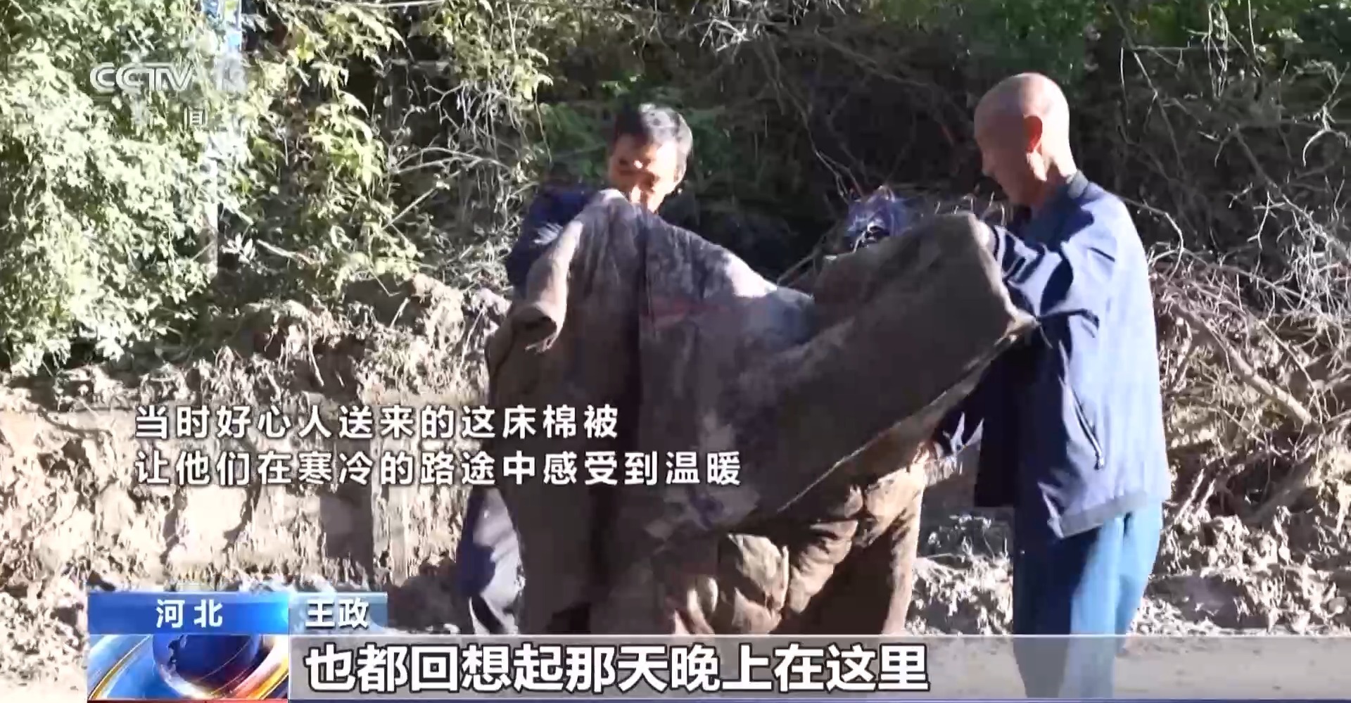 涞水县龙门乡苇家峪村村民 王政:觉得这个被子也挺亲切的,有那么一种感觉,也都回想起那天晚上在这里我们那个场景也都浮现在脑海里了。
