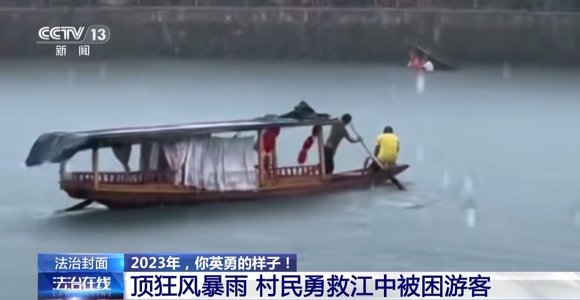 2023年8月9日,湖南湘西花垣县的一个景区内,天空中突然狂风大作,紧接着暴雨倾盆而下,在一条80米宽的江面上,有一艘载有5名游客的游船在狂风的袭击下无法返航,见此情景,刚刚紧急靠岸的龙道军又迅速冲上自己的小木船,一旁的罗永华也果断跟上,两人顶着狂风暴雨,奋力地划着船,向着被困游客的方向驶去,好在他们两人都有着娴熟的驾船技巧,最终成功抵达被困游客的身旁,将他们全部接到自己的船上,成功返航。