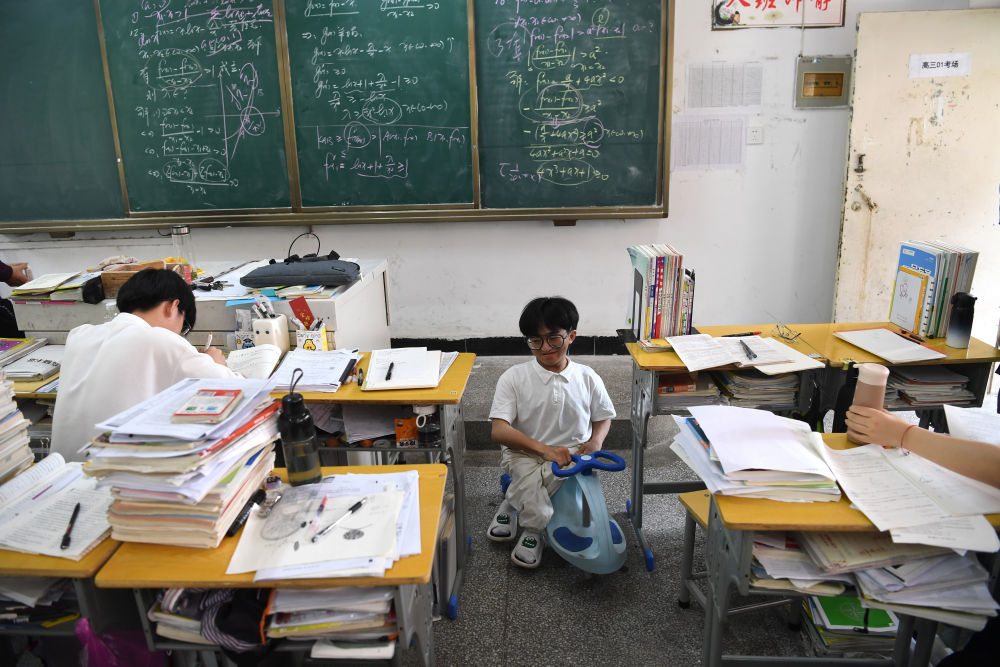 5月31日,张亮骑着扭扭车回到教室。21岁的张亮患有先天疾病脆骨症,双腿发育不全,无法走路。多年来,坚强又乐观的张亮始终努力求学。他靠着扭扭车自如往来于校园各处。