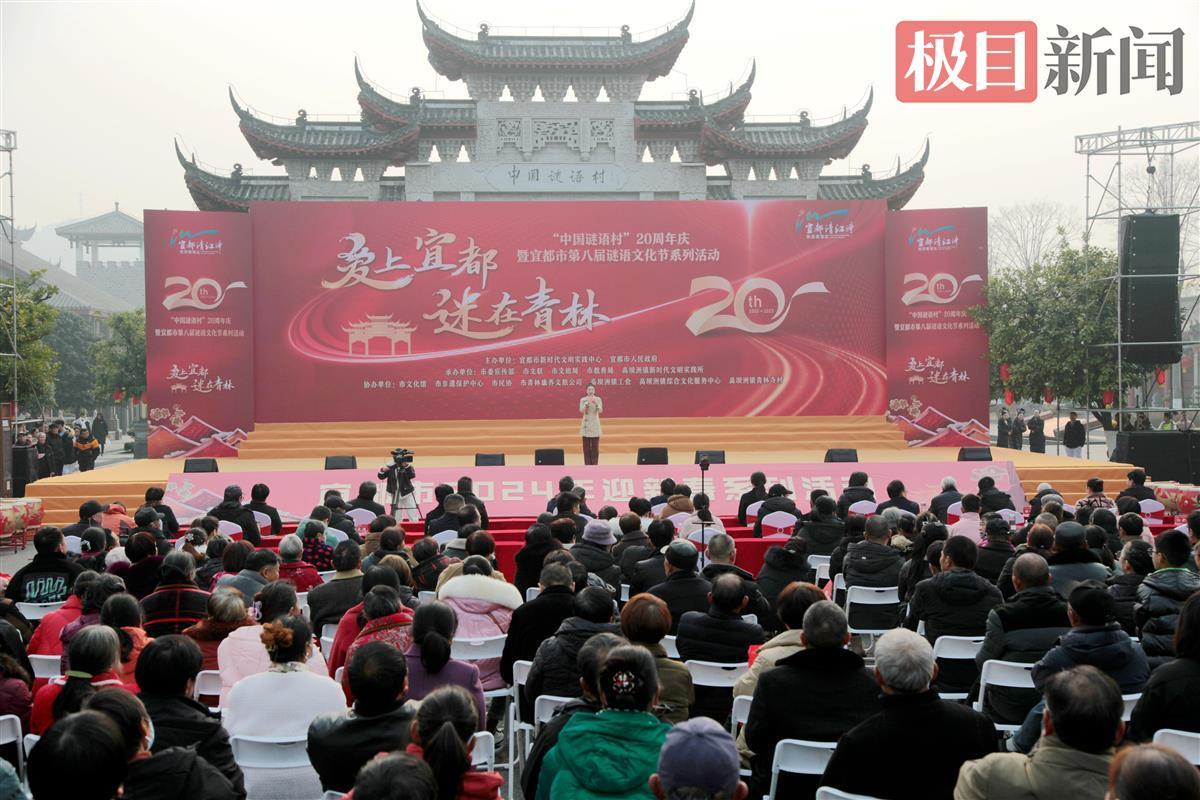 12月28日,“爱上宜都·迷在青林”2024年迎新春系列活动开幕式——“中国谜语村”20周年庆暨湖北宜昌宜都市第八届谜语文化节在高坝洲镇青林寺村举行。