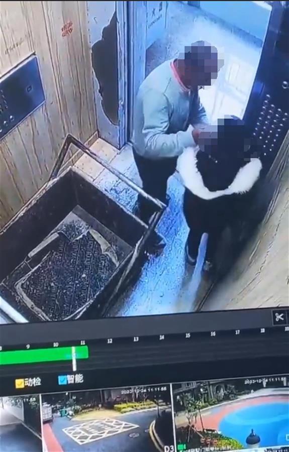 网传视频显示,一男子在电梯内持续伸手拉扯旁边的女孩。电梯开门后,这名男子还伸手搂住冲出电梯的女孩,女孩最后挣脱跑走。视频中,这名男子满手是灰,身后还有个小推车,疑似装修工人。视频发布者表示,这是约克阳光(小区)的监控,提醒女性朋友们出门注意安全。