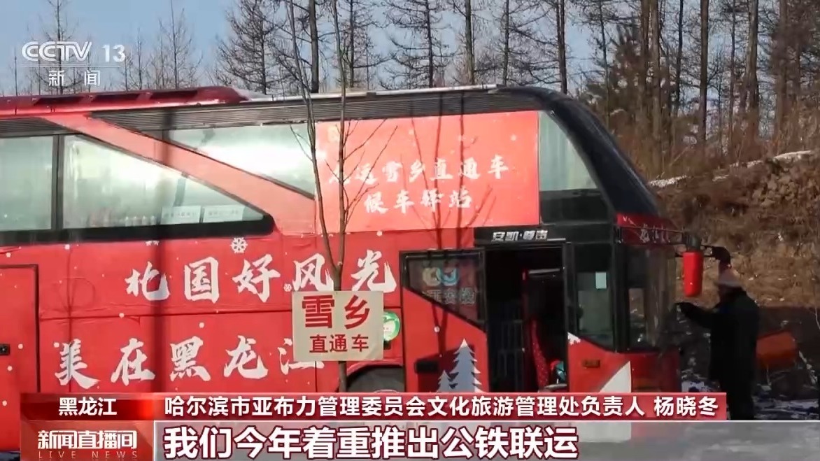 国铁哈尔滨局哈尔滨站副站长 刘春伟:我们与亚布力管委会建立了对接机制,在哈尔滨站、哈尔滨西站、亚布力西站开通了公铁联运的服务,定制了一站运输,每天在大巴车接驳上安排了将近200台次的大巴车。