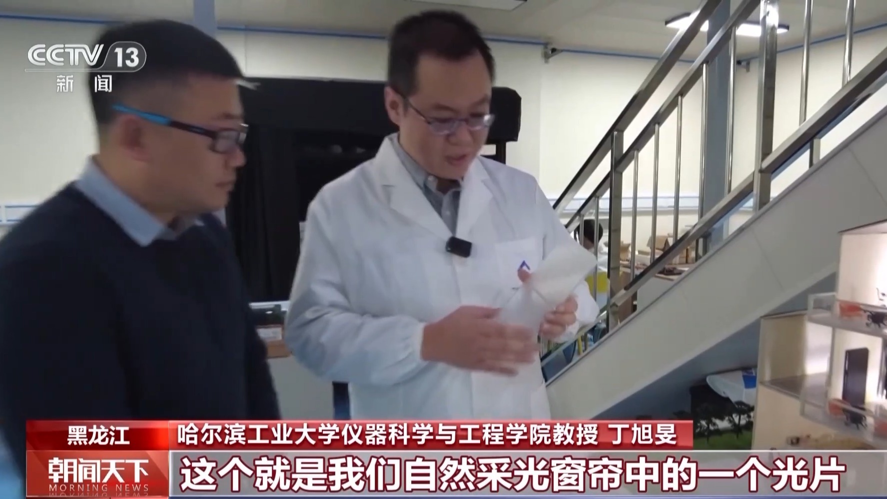 哈尔滨工业大学仪器科学与工程学院教授 丁旭旻:这个就是我们自然采光窗帘中的一个光片,从材料上讲它就是一种树脂材料,但是它不是一个普通的树脂材料。这个是将我们显微成像系统里面光场调控的思想应用到自然光采光技术中。我们可以看到,当自然光照射的角度比较大的时候,传统的窗户,它的光线只能进到离窗户很近的空间范围内,但是用上我们的自然采光窗帘以后,阳光能够被很好地、均匀地照射到屋里面的各个角落。