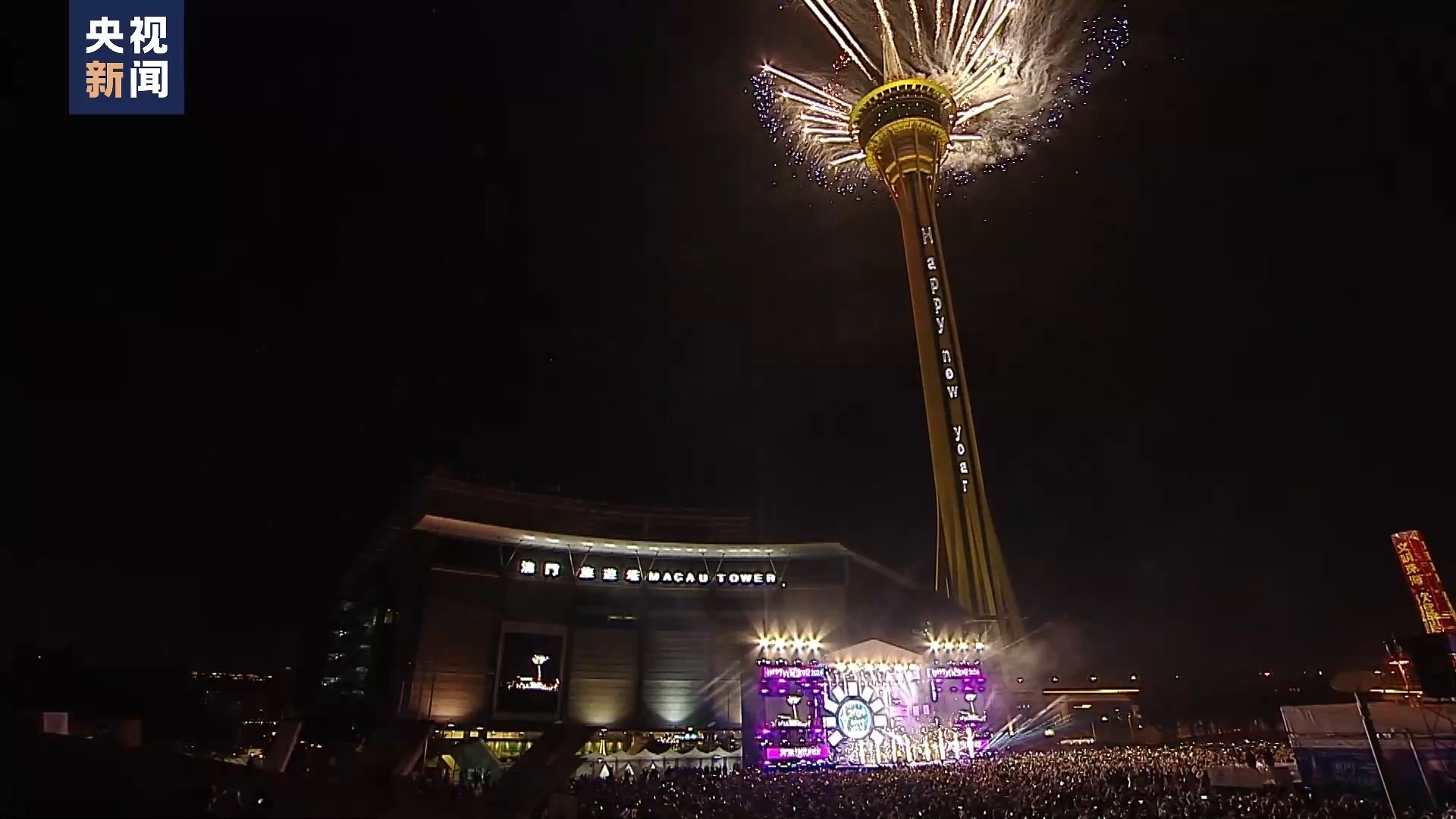 总台记者 刘冰清:我身后就是澳门旅游塔附近的西湾湖广场,众多的市民和游客聚集在这里参加正在举行跨年活动,在热闹和喜庆的氛围中共同辞旧迎新。