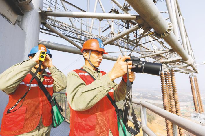 百米电塔作业 点亮万家灯火