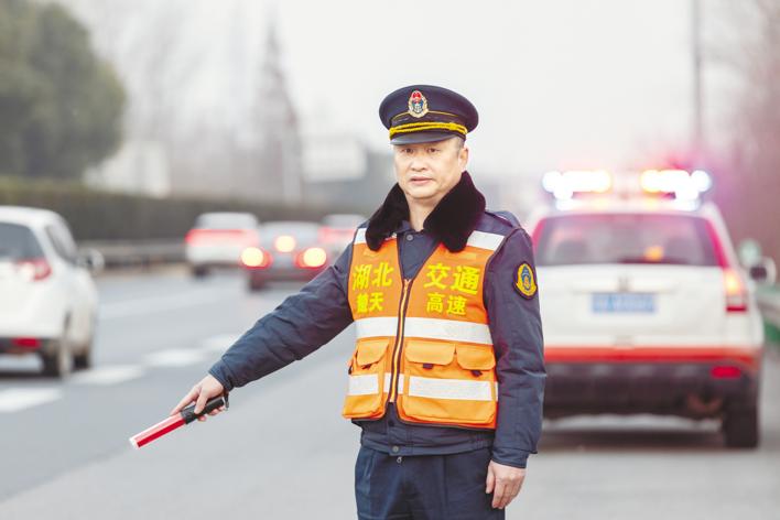 1月1日,高速路政工作人员在汉宜高速事故处置现场指挥疏导交通。