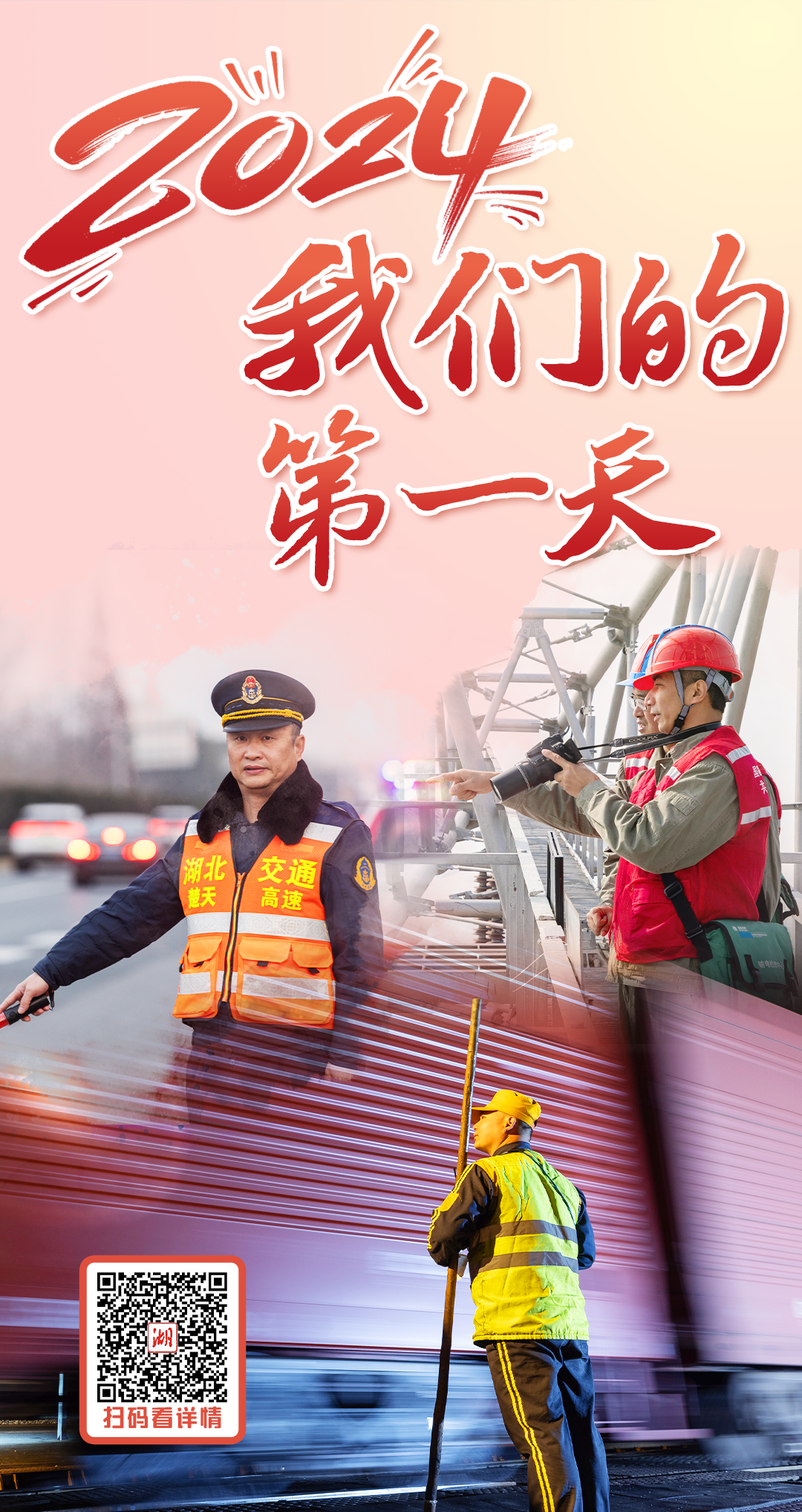 新年第一天,我们去往机场、货运编组站、高速公路、银行、商圈、电塔,见证守护“灯光星河”的“掌灯人”、指挥“钢铁巨龙”的“驯龙师”、平安归途的“守护人”、百米高塔上的“电网医生”等劳动者,在岗位上忙碌的一天。从他们铿锵的脚步声中,聆听奋进的时代之声,感知湖北高质量发展的春潮涌动,更添阔步新征程的信念与信心。