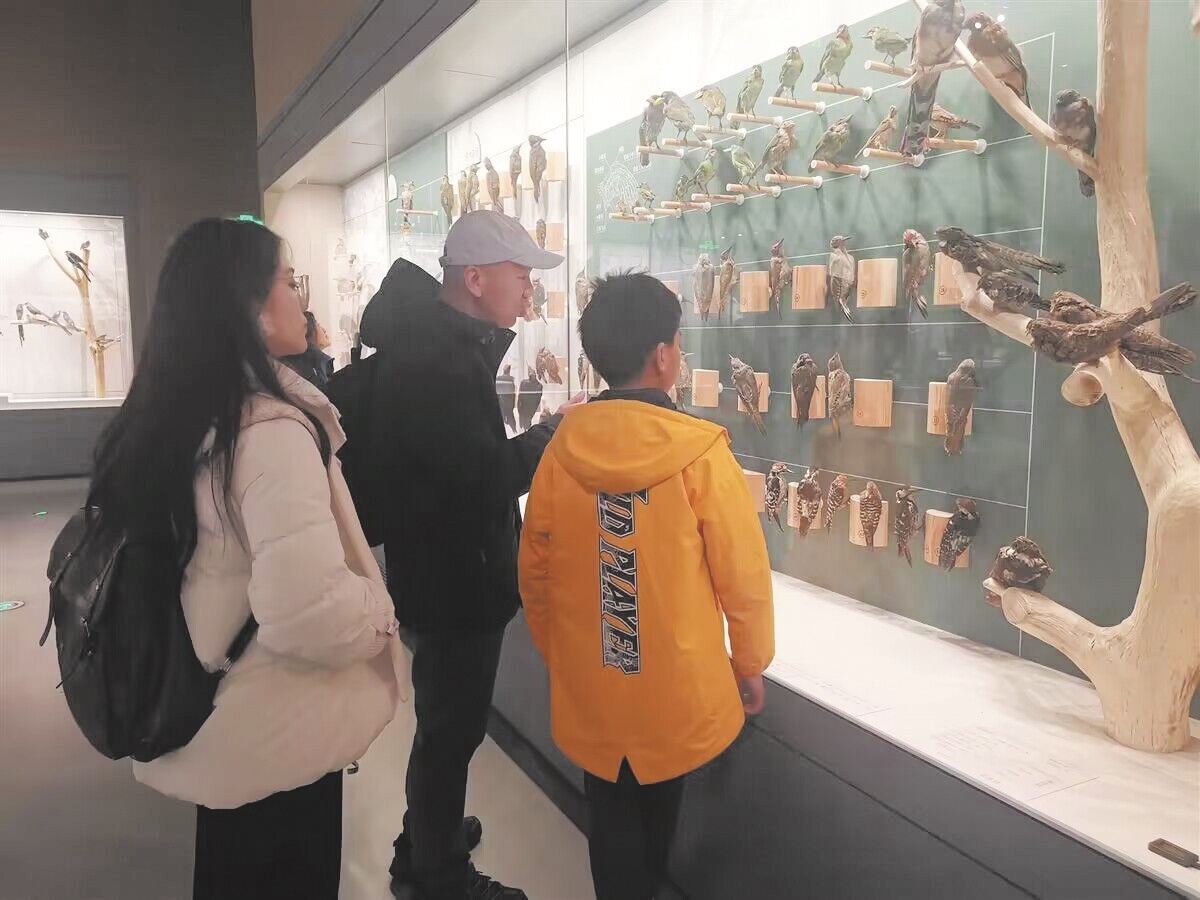 “这个字你会读吗?隼,是小型猛禽,但凶得很呢。”30日上午,在万林艺术博物馆负一层基本陈列区,来自十堰的陈先生正在给儿子讲解鸟类标本。这里展出的1247件鸟类动物标本、140多件哺乳动物标本以及400余件(套)文物,对孩子们极有吸引力。