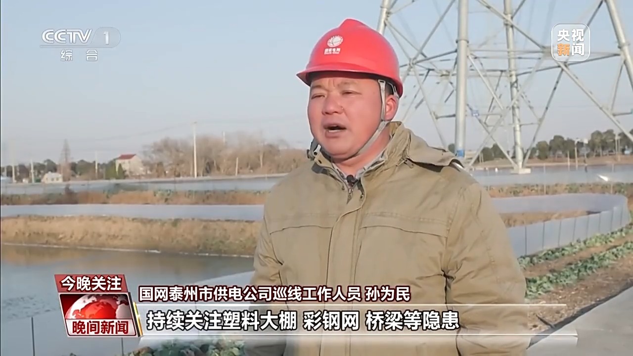 国网泰州市供电公司巡线工作人员 孙为民:元旦期间,我们驻点12人分成6个小组,持续关注塑料大棚、彩钢网、桥梁等隐患,全力以赴保障北电南送通道安全畅通。