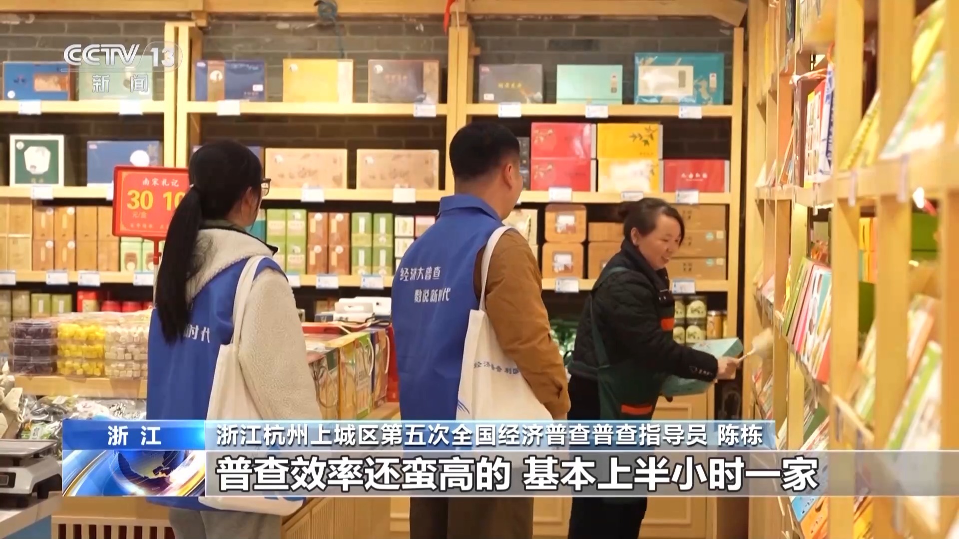 浙江杭州上城区第五次全国经济普查普查指导员 陈栋:一天普查下来,我们成绩还挺好的,普查效率还蛮高的,基本上半小时一家。