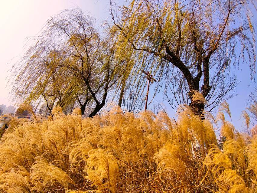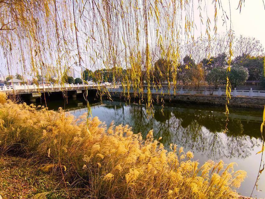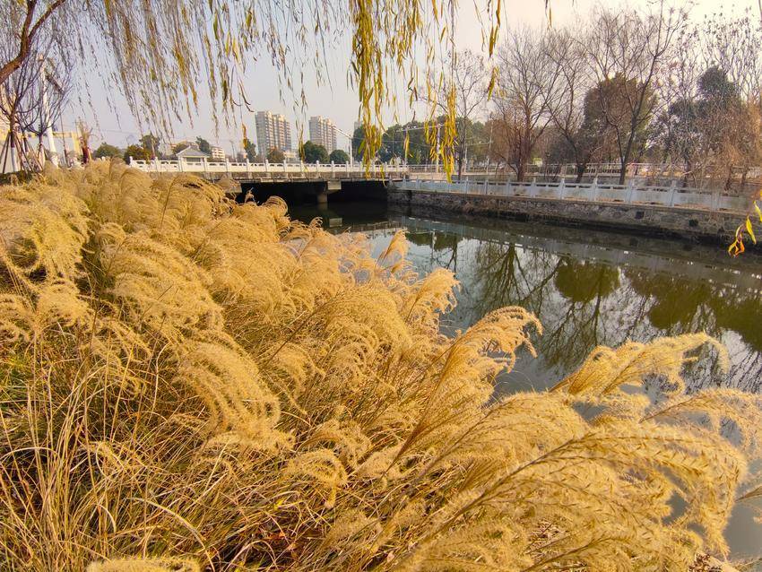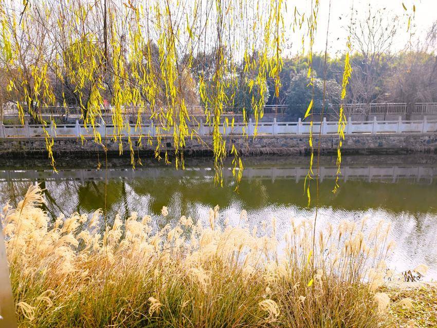 湖北日报客户端讯(通讯员 陈保忠)1月1日,小城云梦新年第一天,冬日暖阳,龙岗路滨水地带,芦苇飞絮,垂柳弯腰,水天倒映,美不胜收。冬日寒风徐徐,茅草起伏,花儿纷纷扬扬,飘飘洒洒,宛若严冬的童话。白色的花穗充满勃勃生机与寒冬的活力,毛茸茸的连成一片,迎风舞动,蔚为壮观。