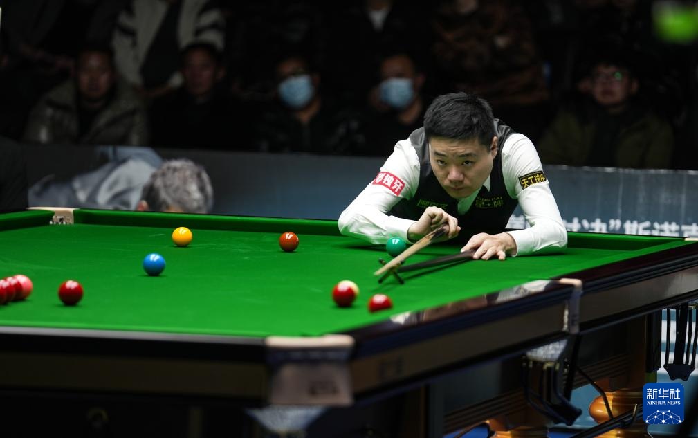 1月1日,丁俊晖在比赛中。新华社记者 晋美多吉 摄