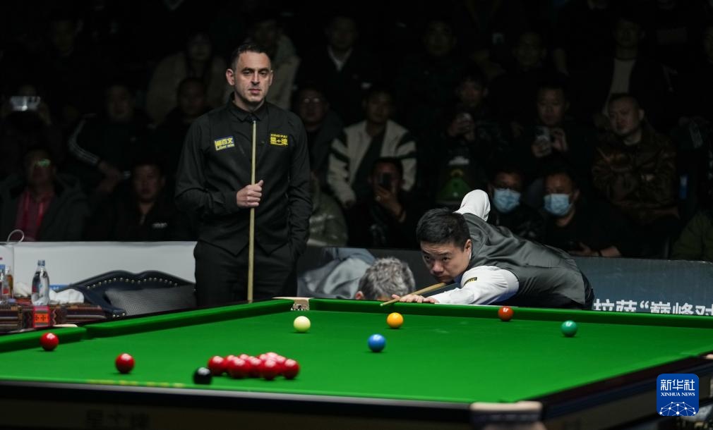 1月1日,丁俊晖(右)和罗尼·奥沙利文在比赛中。新华社记者 晋美多吉 摄