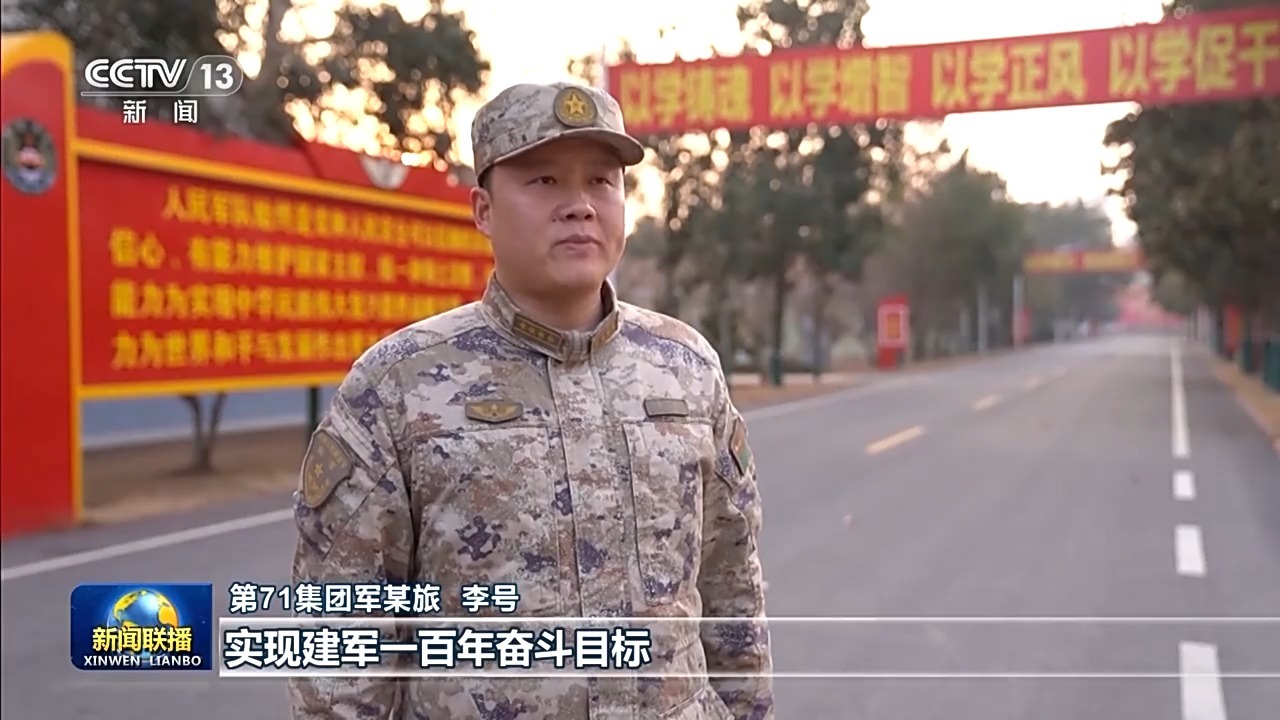 第71集团军某旅 李号:实现建军一百年奋斗目标,是未来几年我军建设的中心任务,是我们向党和人民立下的军令状。我们要以贯彻党的二十大精神为牵引,坚决贯彻党中央、中央军委和习主席的决策部署,强化如期交出历史答卷的使命担当,打好实现建军一百年奋斗目标攻坚战。
